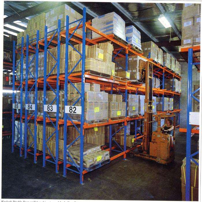 二、雙深度貨架。一種采用剪刀式叉車,將貨架設計成雙排并列存放的貨架類型,結構簡便,倉庫利用率高,儲存量高,比橫梁式貨架多出一倍的存貨量,可有緩解企業(yè)倉庫存儲為不足,是造紙、塑料制品、包裝等行業(yè)的寵兒。