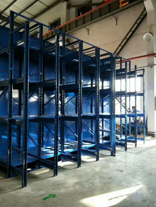 四、模具貨架。由橫梁式作為整體框架,在貨架柱片上安裝導向軌、抽屜盤,采用螺栓連接,結構穩(wěn)定,安全可靠,一般成排使用,還可在貨架頂部配置移動葫蘆車,以方便模具的起吊,為各種模具物品的存放提供諸多便利。