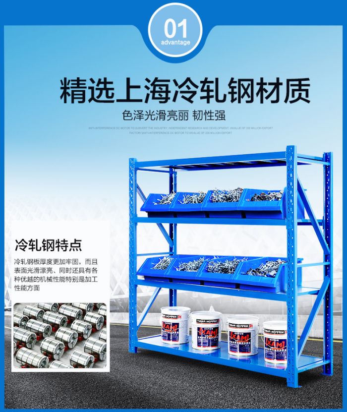 材質:冷軋異形鋼,表面靜電噴塑 型號:倉儲 庫房 承重:200KG-800KG/層