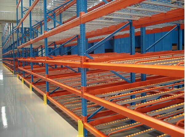 流利式貨架簡稱流利架,是將貨物置于滾輪上,利用一邊通道存貨,另一邊通道取貨。料架朝出貨方向向下傾斜,貨物在中立作用下向下滑動?蓪崿F先進先出,并可實現一次補貨,多次揀貨。流利架存儲效率高。適合大量貨物的短期存放和揀選。流利架廣泛應用于配送中心、裝配車間以及出貨頻率較高的倉庫。