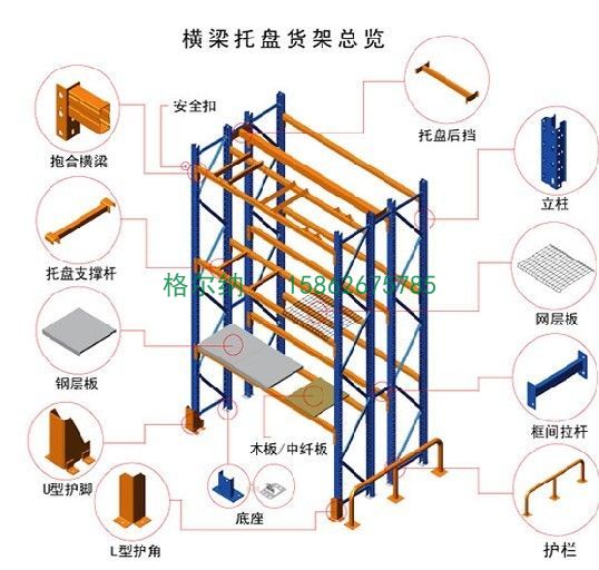 蘇州橫梁式貨架:是以托盤以儲存單元化托盤貨物,配以巷道式堆垛機及其他儲運機械進行作業。高層貨架多采用整體式結構,一般是由型鋼焊接的貨架片(帶托盤),通過水平、垂直拉桿以及橫梁等構件聯接起來